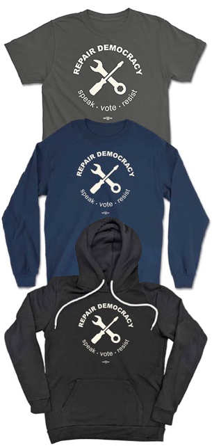 And if shirts and hoodies aren’t your thing, consider donating to the ACLU anyway. Their expertise and tireless commitment inspire us in our goal of repairing our democracy.